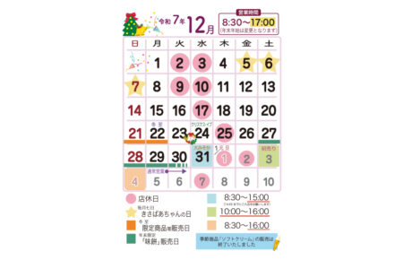 2025年12月営業日のお知らせ