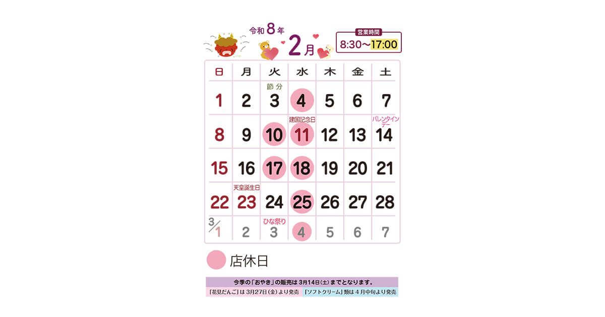 2026年2月の営業日をお知らせいたします。